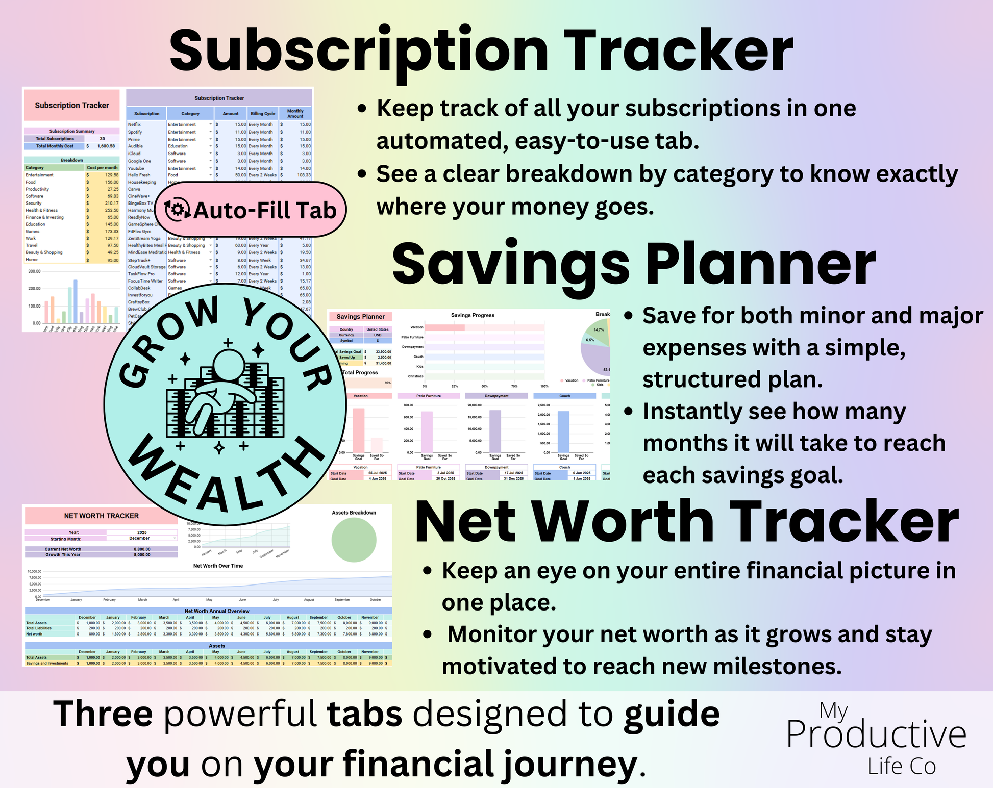 • Net Worth Tracker: See your assets, debts, and progress over time