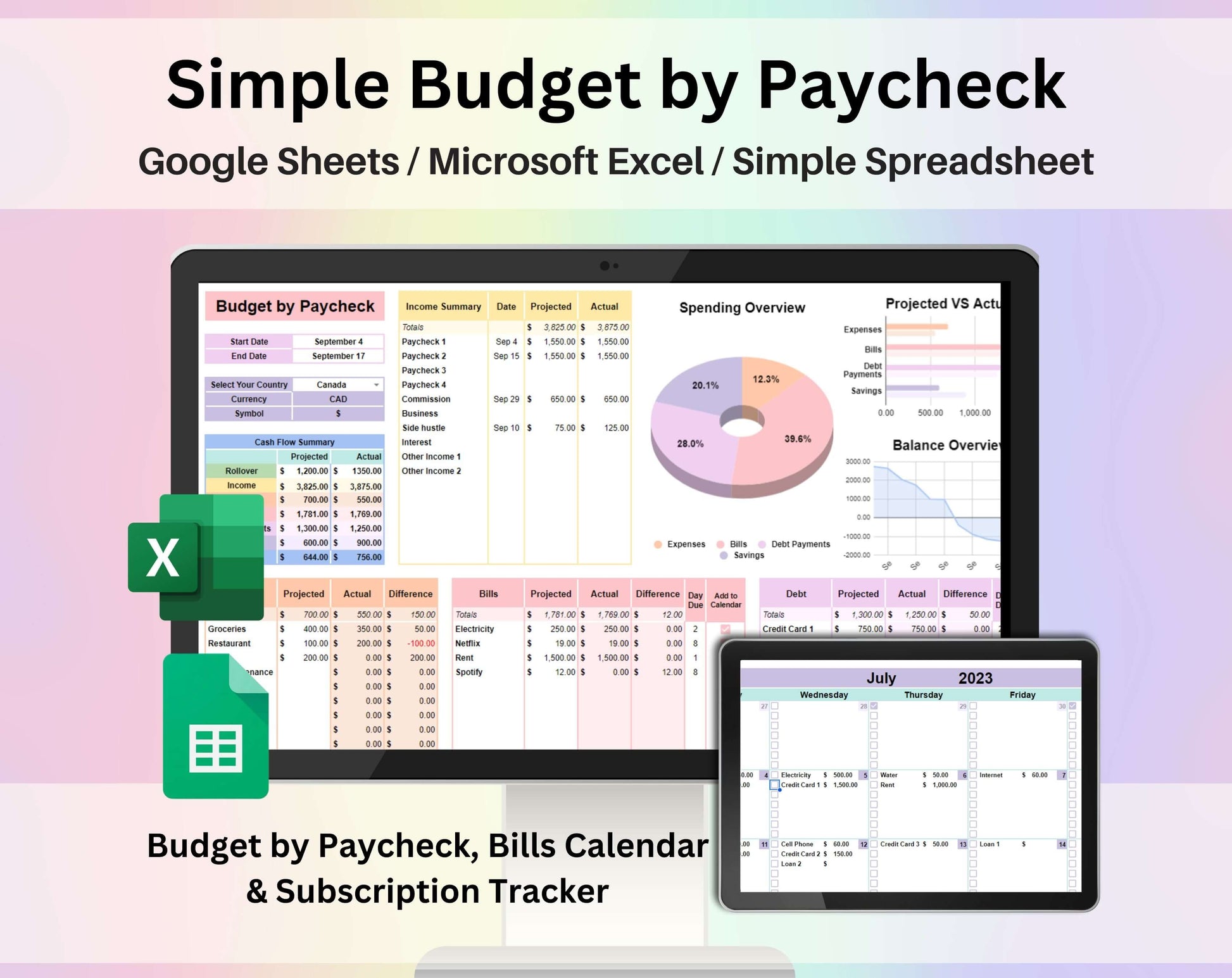 The Simple Budget by Paycheck spreadsheet for Google Sheets and Microsoft Excel makes budgeting fun!