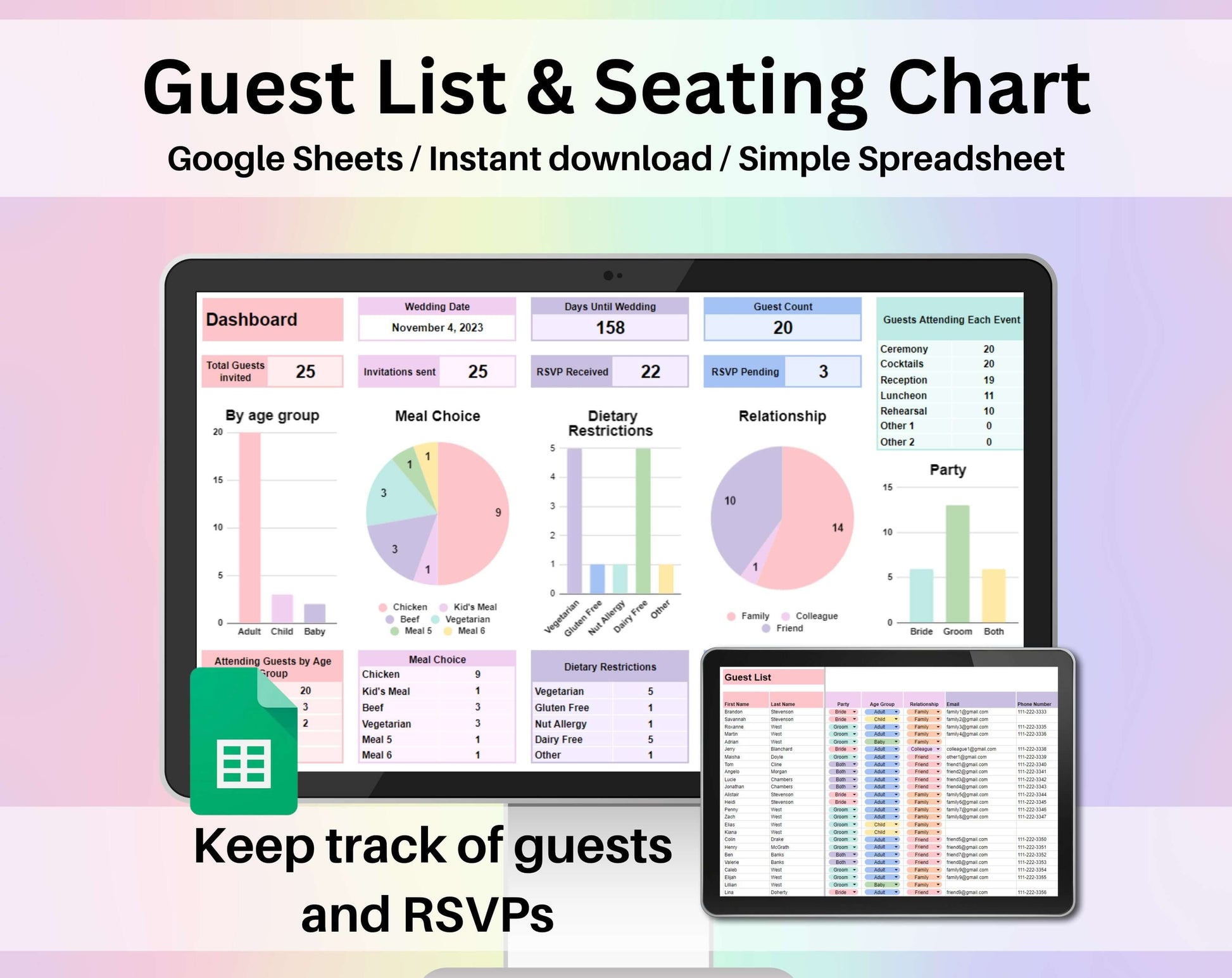 Simplify your wedding planning with our comprehensive Wedding Guest List and Seating Chart for Google Sheets!